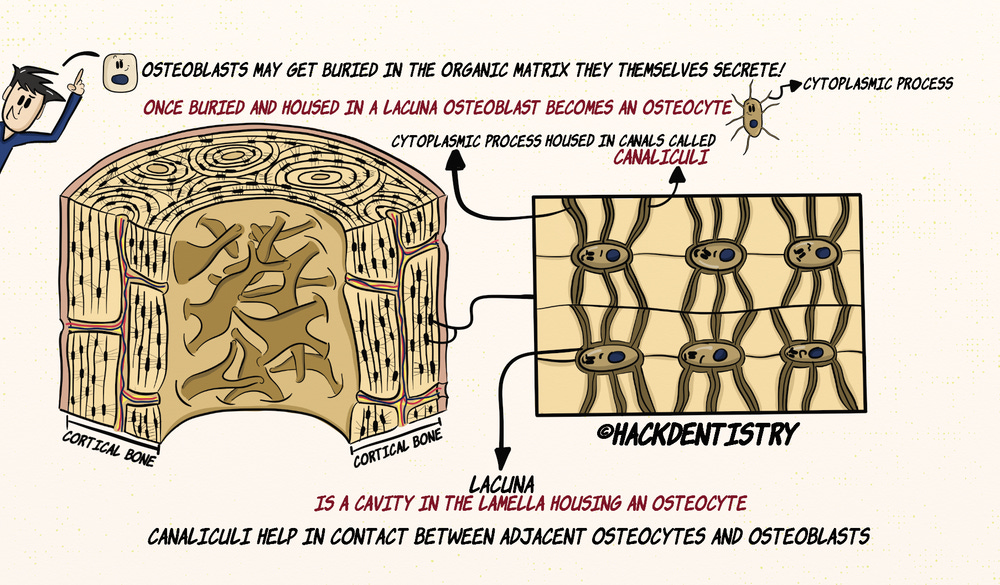 These canaliculi are interconnecting and help osteocytes contact adjacent osteocytes as well as the osteoblasts lining the bone surface.