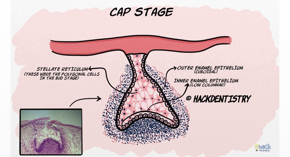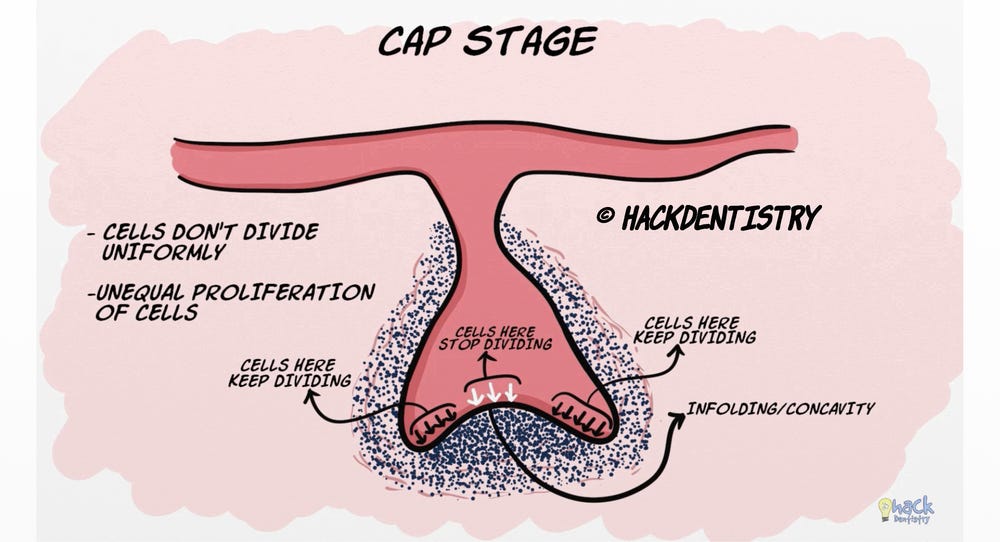 This leads to a concavity or an infolding of the epithelium resulting in the bud shaped enamel organ becoming cap shaped!