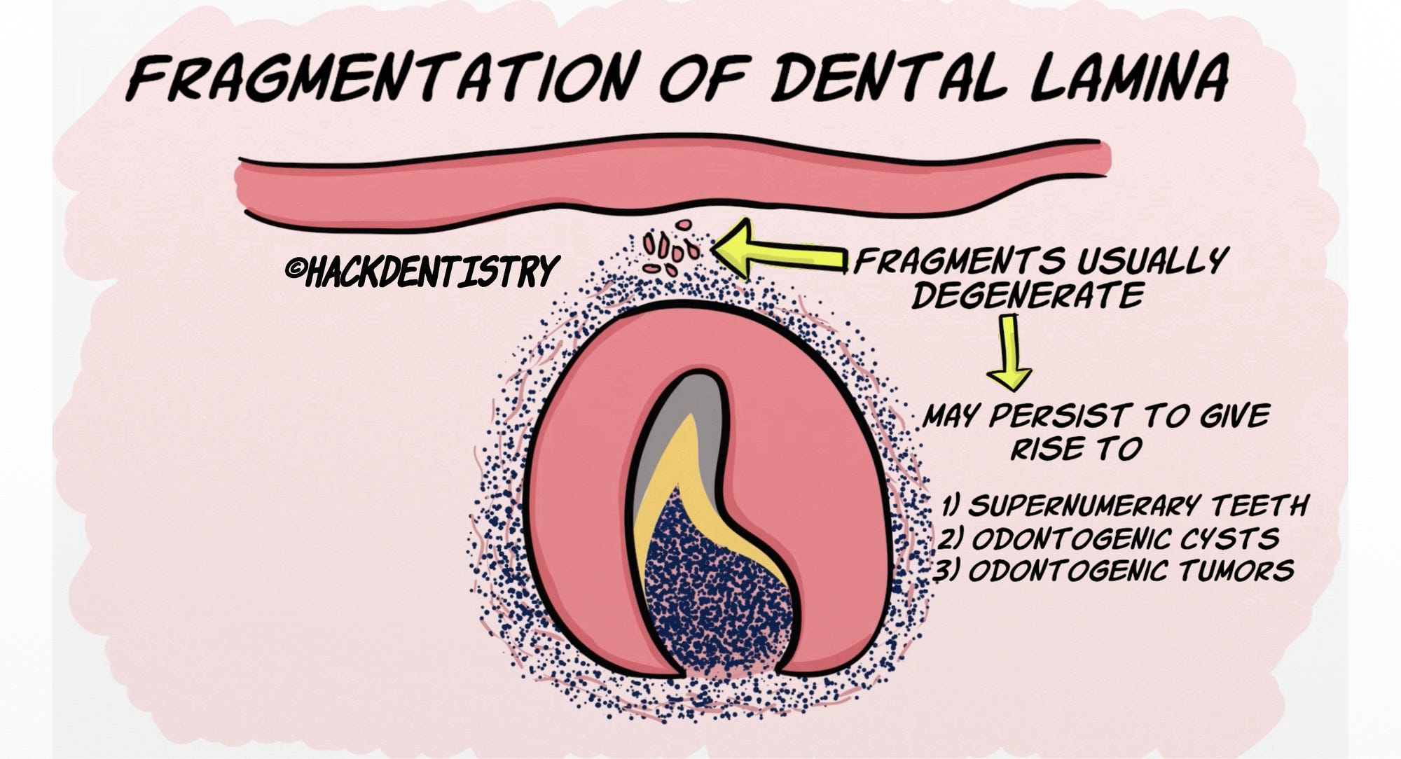 However, they may sometimes persist giving rise to supernumerary teeth, odontogenic cysts and tumors.
