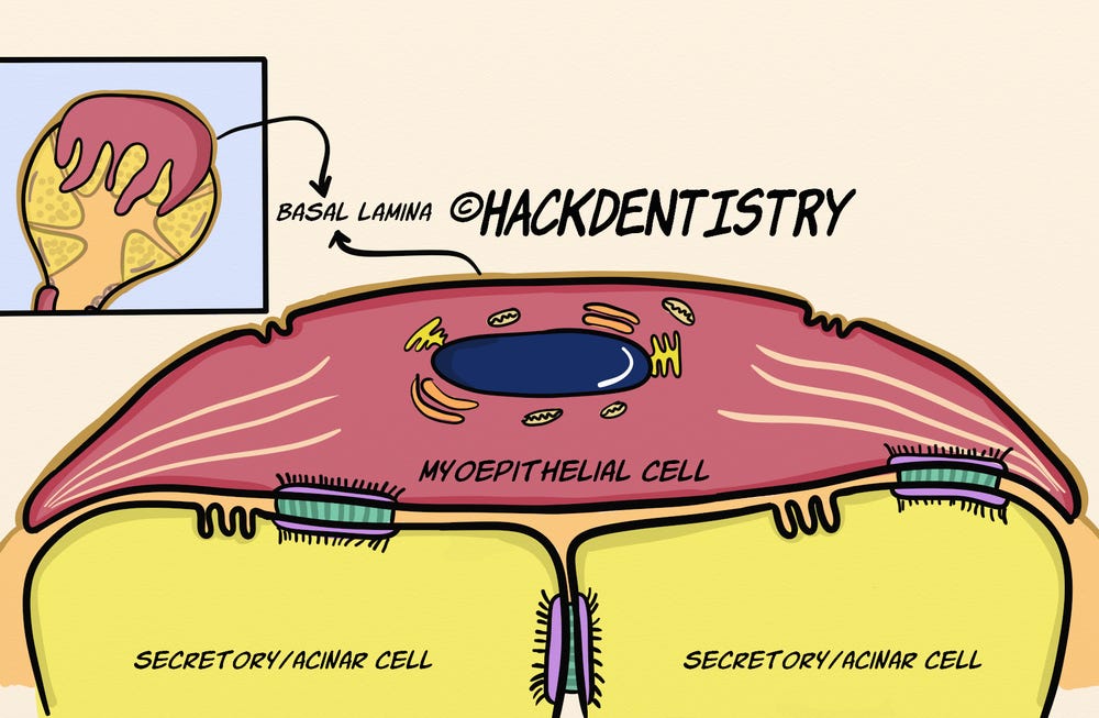 Shah AA, Mulla AF, Mayank M. Pathophysiology of myoepithelial cells in salivary glands. J Oral Maxillofac Pathol. 2016 ;20(3):480-490.