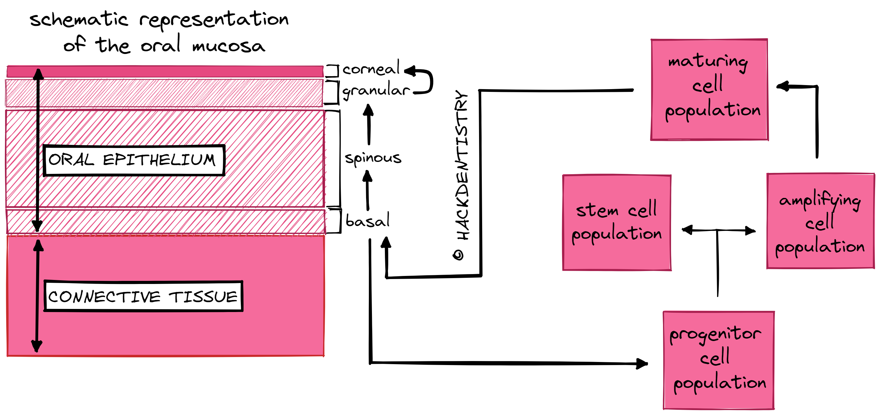 The term “stratified“ refers to the oral epithelium being stacked in layers. Epithelium having 2 or more layers of cells are said to be “stratified” (see Figure 2 & 3).