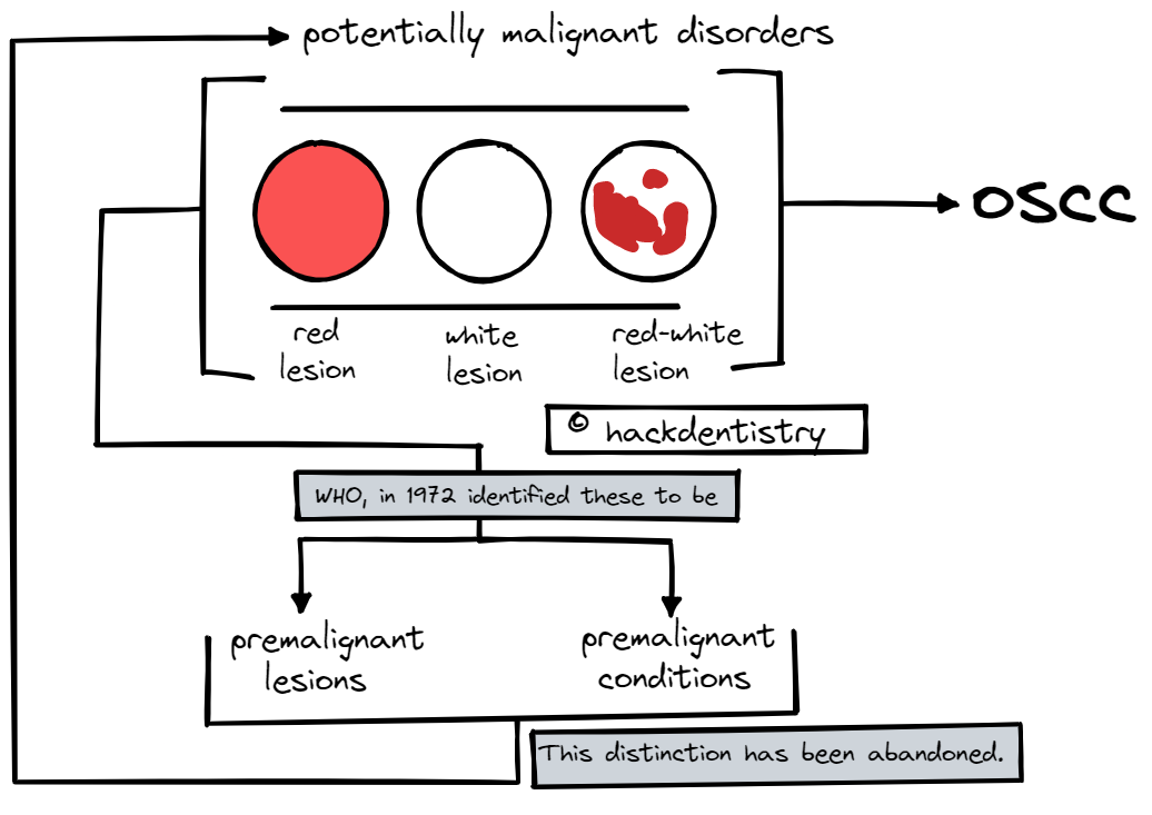 At that time this classification was not just academic. It was thought that malignancy (OSCC) occurring from a precancerous lesion, would appear in the same site as the precancer lesion. Eg - leukoplakia, erythroplakia