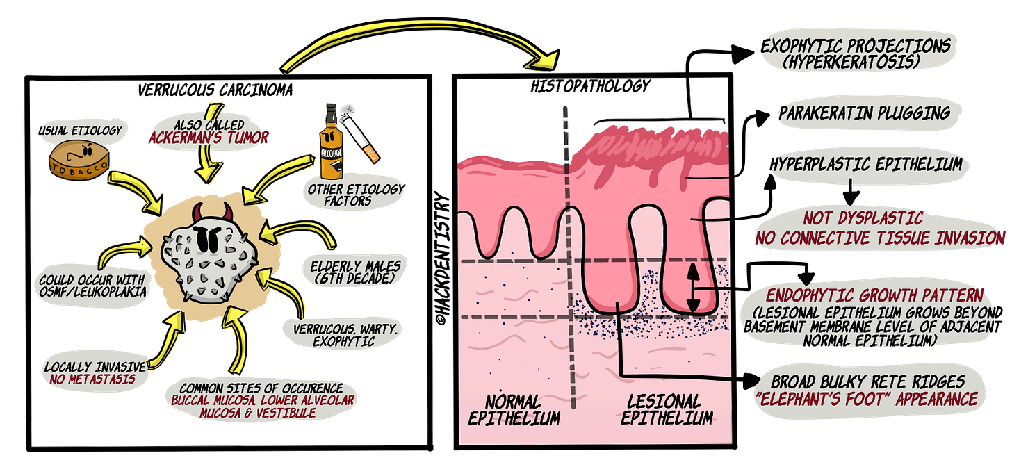 Verrucous carcinoma (VC) is a warty, exophytic variant of oral squamous cell carcinoma (OSCC).